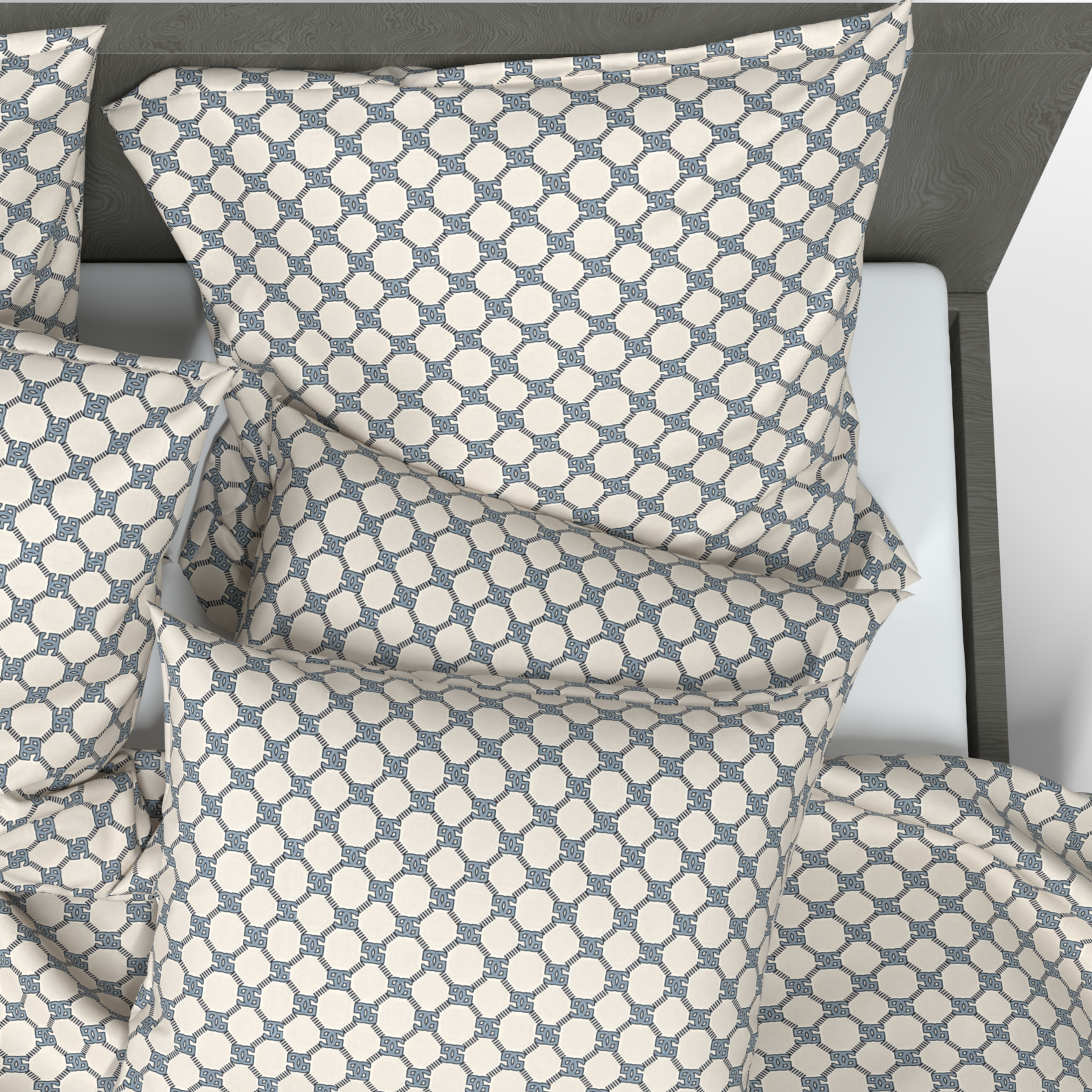 This Deluxe satin cotton bedding set with geometric patterns reflects elegance and modernity. Light colors with dark accents create a balanced and stylish interior, giving your bedroom a unique charm.