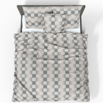 Minimalistic design inspired by a chessboard, combining sand and grey tones, will perfectly complement a contemporary or industrial style bedroom.