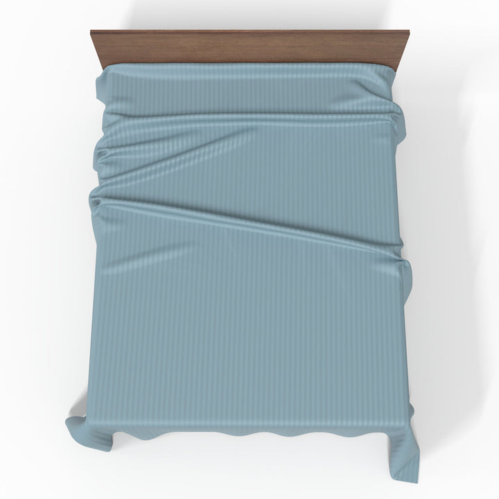 Handgefertigtes luxuriöses Premium gestreifter Satin Baumwoll Bettlaken | Stone Blue