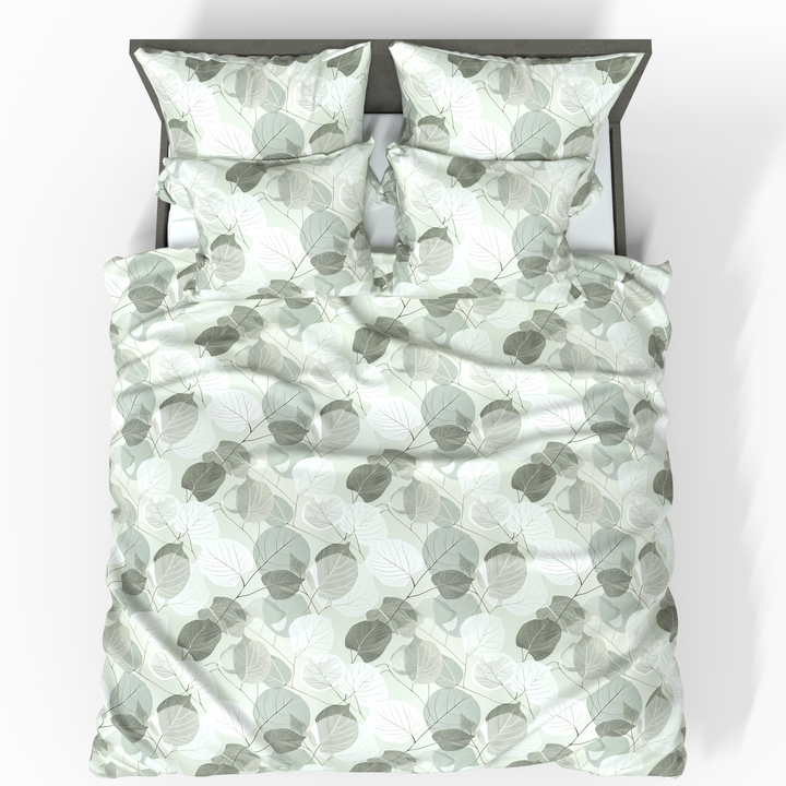 💨 „Copenhagen“ – ein heller und sanfter Bettdeckenbezug, verziert mit pastellfarbenen Blättermotiven, inspiriert vom skandinavischen Design. Eine perfekte Wahl für alle, die Leichtigkeit, Natürlichkeit und Ästhetik suchen.