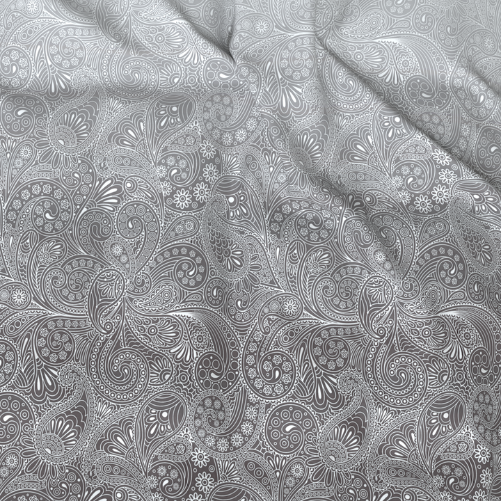 Dieses Deluxe Satin-Baumwoll Kissenbezug, inspiriert von der Stadt Jaipur, zeichnet sich durch elegante und einzigartige Paisley-Muster aus, die dem Interieur einen besonderen Reiz verleihen. Die Kombination aus Grau und Weiß schafft Ruhe und Harmonie in Ihrem Schlafzimmer, damit Sie in einen tiefen und komfortablen Schlaf eintauchen können.