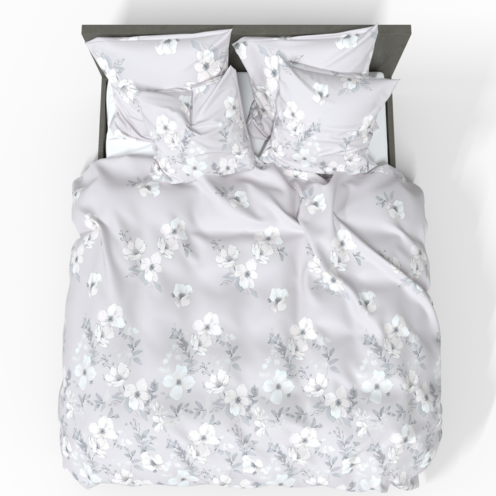 🌸 Tauchen Sie ein in Harmonie und Ruhe mit "Kyoto" - einem exklusiven Bettwäscheset aus unserer Deluxe-Kollektion. Der sanfte olivfarbene Hintergrund, verziert mit subtilen weißen Blüten, schafft ein Gefühl von Leichtigkeit und Eleganz, das an einen Frühlingsmorgen in japanischen Gärten erinnert.