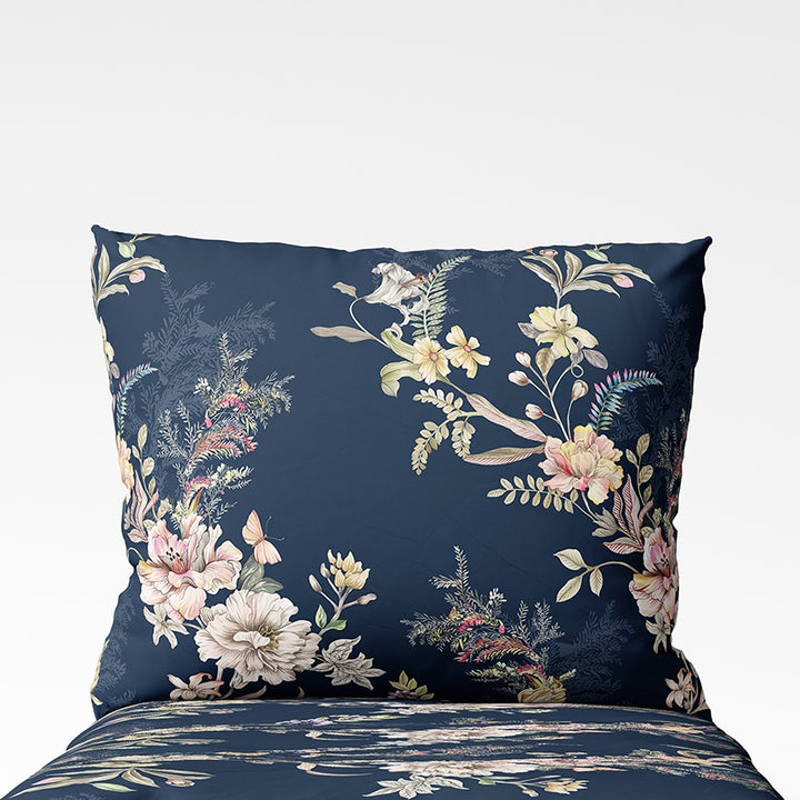 🌙 Midnight Garden – eleganter Kissenbezug, in dem blühende Blumen im Kontrast zu einem tiefen Nachtschwarz stehen. Ein besonders romantischer Akzent für Ihr Bett.