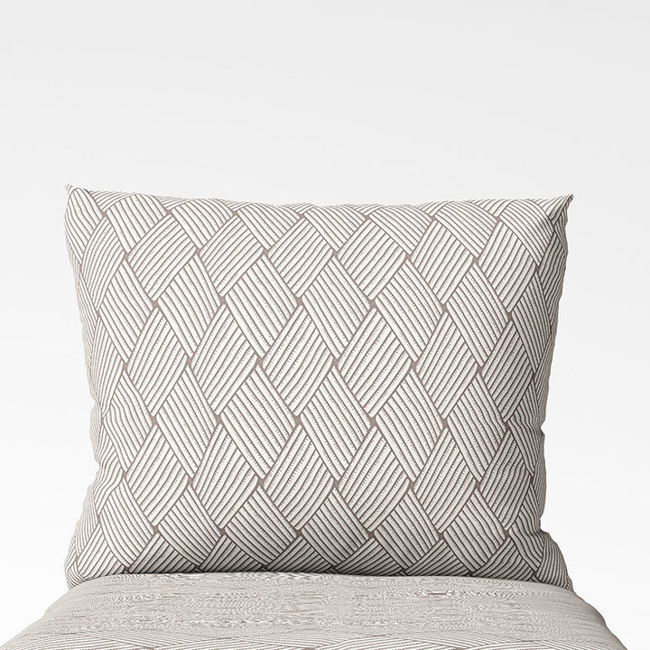🤎 Sand Weave – pagalvės užvalkalas su natūraliu geometriniu raštu, įkvėptu smėlio tekstūros. Jo ramūs tonai suteikia miegamajam lengvumo, o struktūrinis dizainas – vizualinio stabilumo ir tvarkos pojūtį.