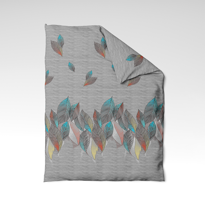 Jungle Lines - a bold and fresh design where colorful leaves contrast with a gray textured background. The composition is created to provide dynamics without chaos, making this cover perfect for both youthful and artistic interiors.