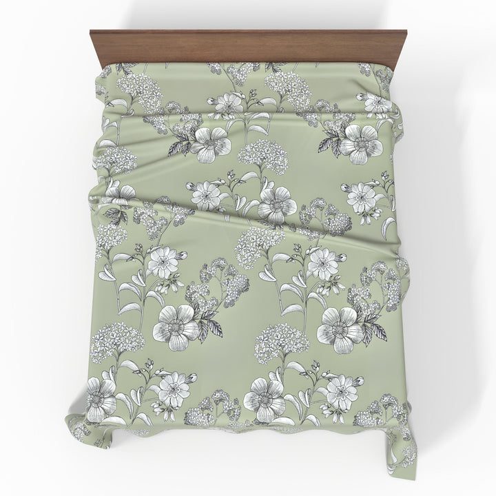 🌿 „Geneva“ – gaivus botaninio stiliaus dizainas tiems, kas vertina natūralų grožį ir švelnumą. Ši paklodė be gumos su šviesiu pistacijų fonu ir pieštiniu gėlių raštu įneš ramybės į jūsų miegamąjį.