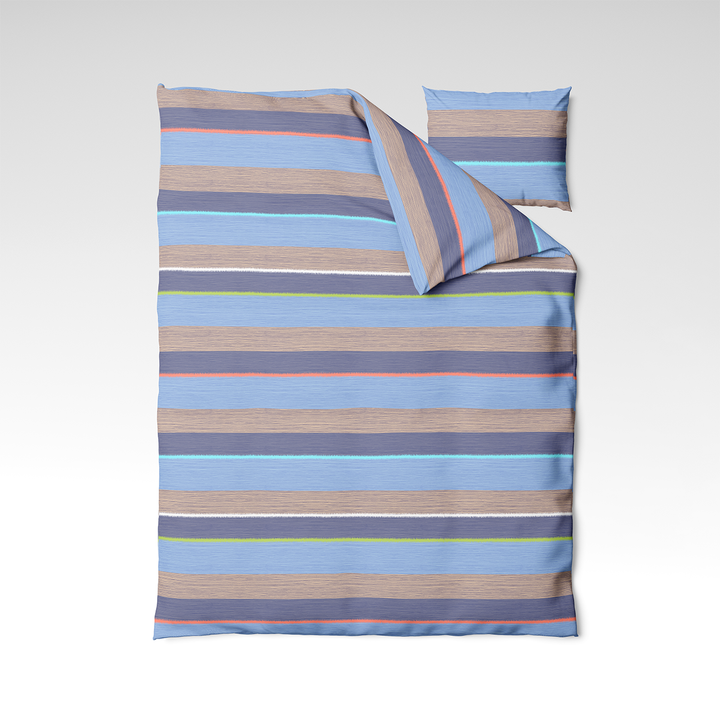 🌊 Coastal Vibes – a colorful and dynamic fabric where various tones of horizontal stripes create a playful, summery mood. Blues, sandy, coral, and green shades are perfect for those seeking vitality, light, and a seaside atmosphere in their interior.