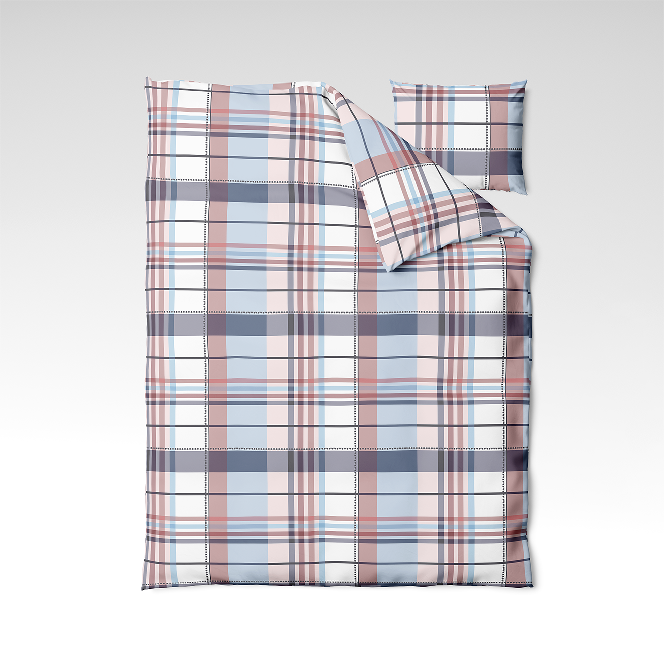 🩷 Blush Tartan - a gentle and modern design where the tartan pattern takes on a fresh character with a combination of powder pink, light blue, and white colors. This update to a classic pattern creates a playful, light, and fashionable mood, perfect for both youthful and subtly romantic bedrooms.