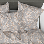 This handmade Deluxe satin duvet cover with exquisite baroque patterns will give your bedroom a classic sense of luxury. A soft sand color with subtle gold tones creates a harmonious and elegant atmosphere inspired by the luxurious lifestyle of Dubai.