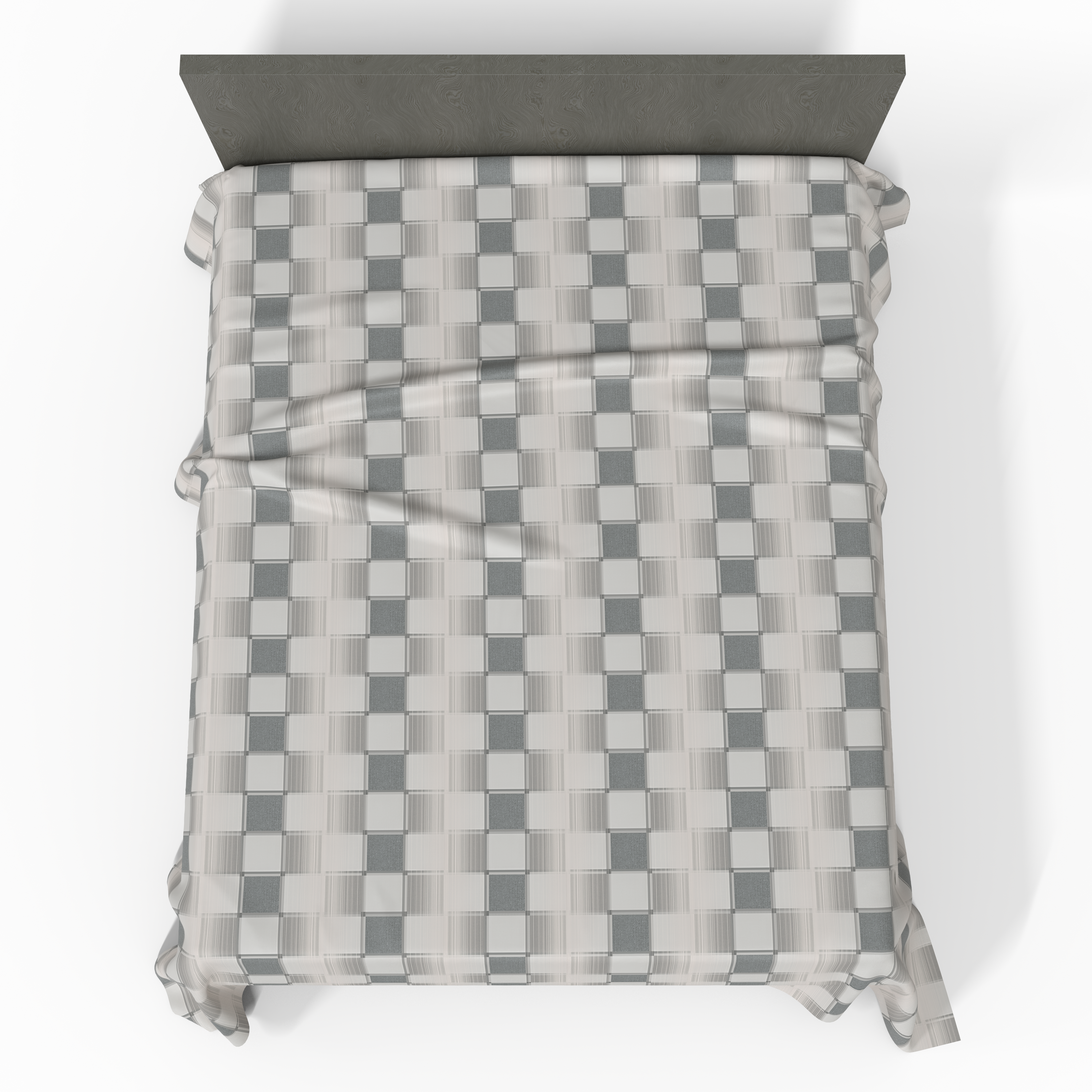Minimalist chessboard-inspired design combining shades of sand and grey will perfectly complement a contemporary or industrial style bedroom.