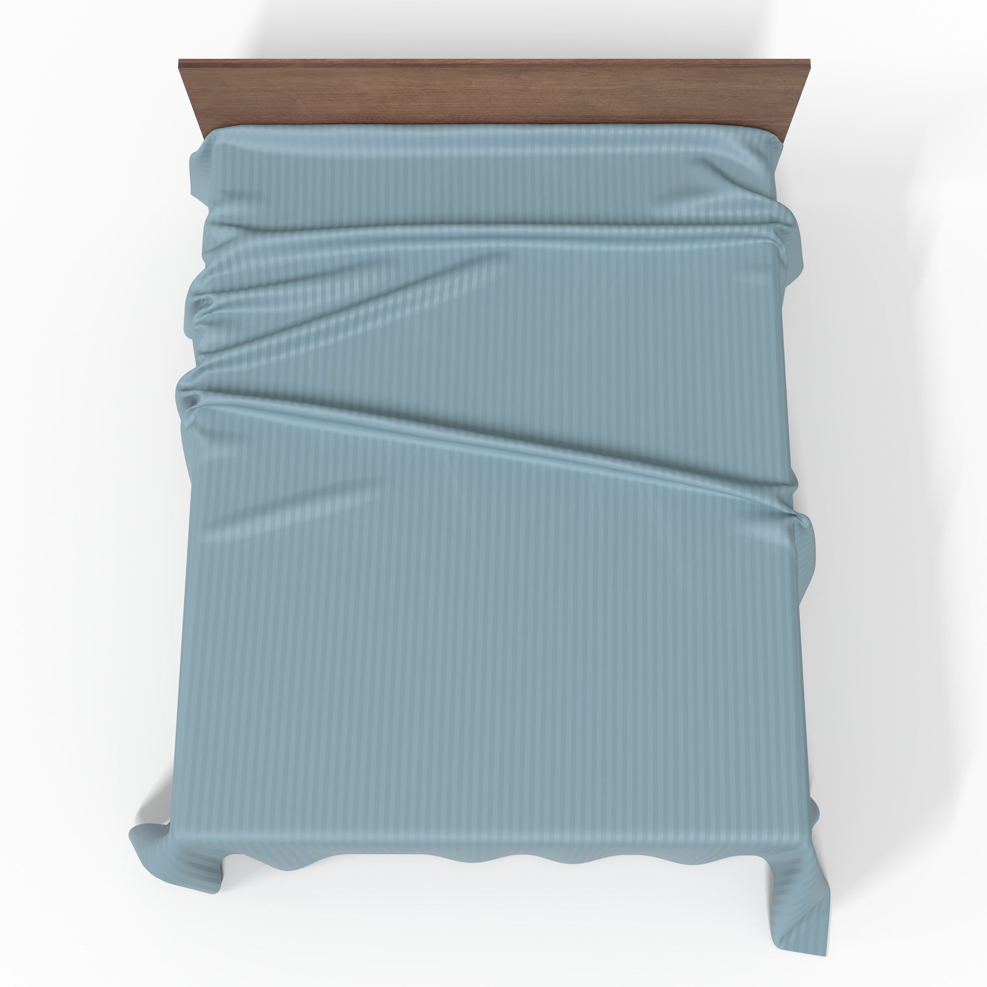 Handmade Luxurious Premium Striped Satin Cotton Flat Sheet | Stone Blue