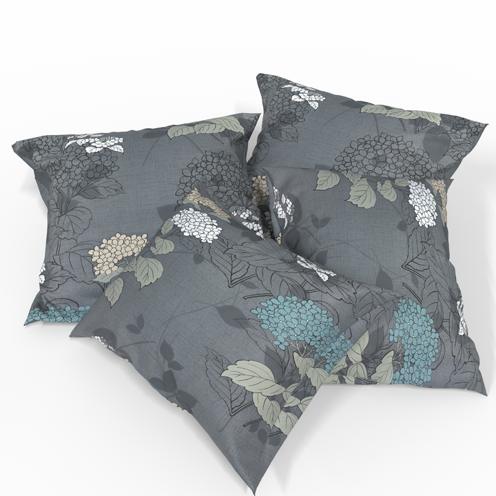 🌸 "Krakow" - a charming fabric with a blooming hydrangea pattern that inspires romance and coziness. The deep gray background contrasts with the pastel flowers, adding warmth to any project - from bedding to decorative curtains.