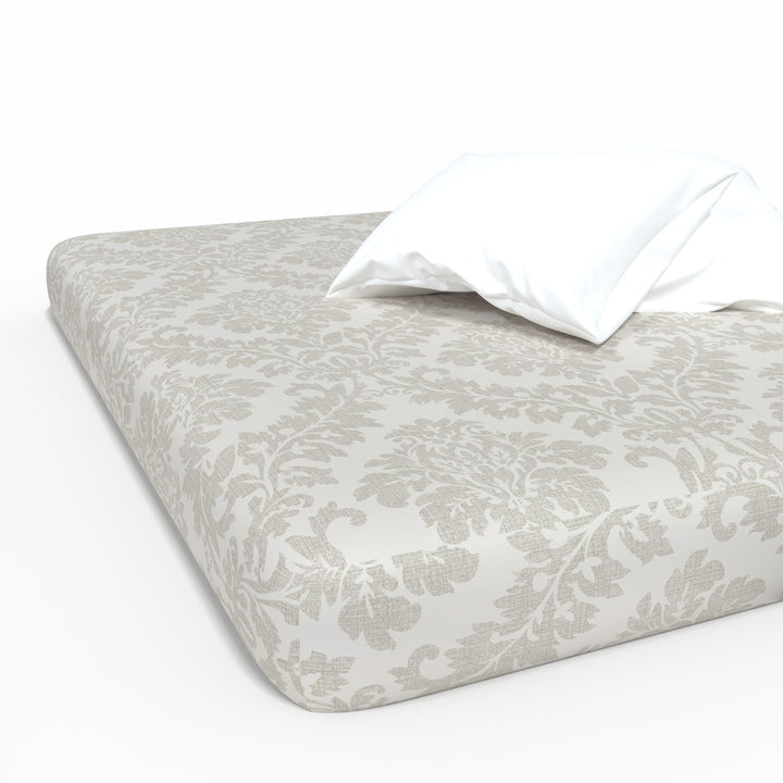 🕊️ «Prague» - элегантное постельное белье с резинкой с классическим дамасским узором. Светлый, нежно блестящий дизайн приносит королевское спокойствие и изысканность в вашу спальню.